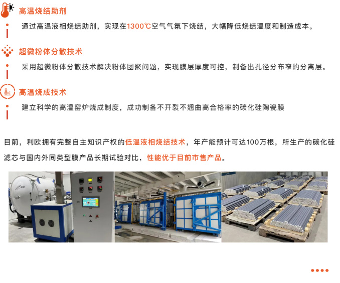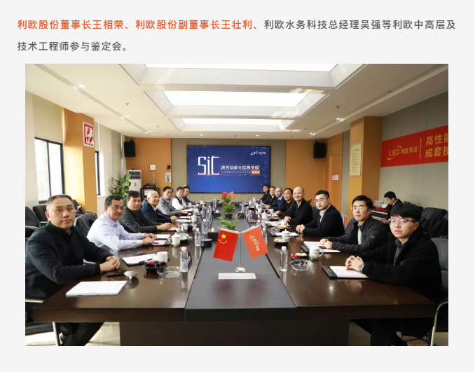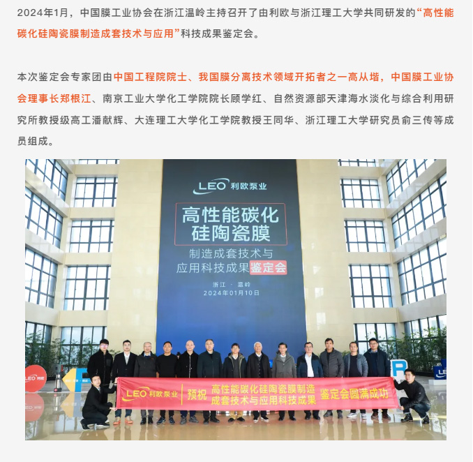 2024年1月,中國膜工業協會在浙江溫嶺主持召開了由利歐與浙江理工大學共同研發的“高性能碳化硅陶瓷膜制造成套技術與應用”科技成果鑒定會。